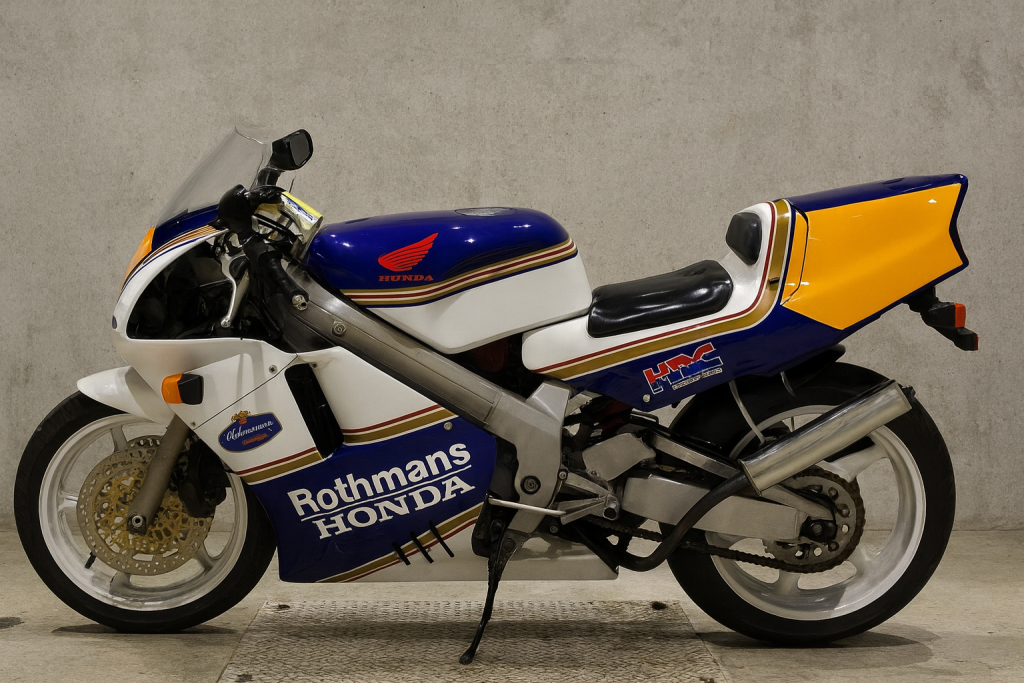 Su decoración Rothmans, inspirada en las motos oficiales de GP de Honda, la convierte en una pieza muy buscada por coleccionistas. Con su estética de competición, sus colores azul, blanco, rojo y dorado, y su sonido característico, esta MC18 representa a la perfección la era dorada de las 250 deportivas japonesas. Ideal para quienes aprecian el espíritu racing auténtico y la exclusividad de un modelo histórico.