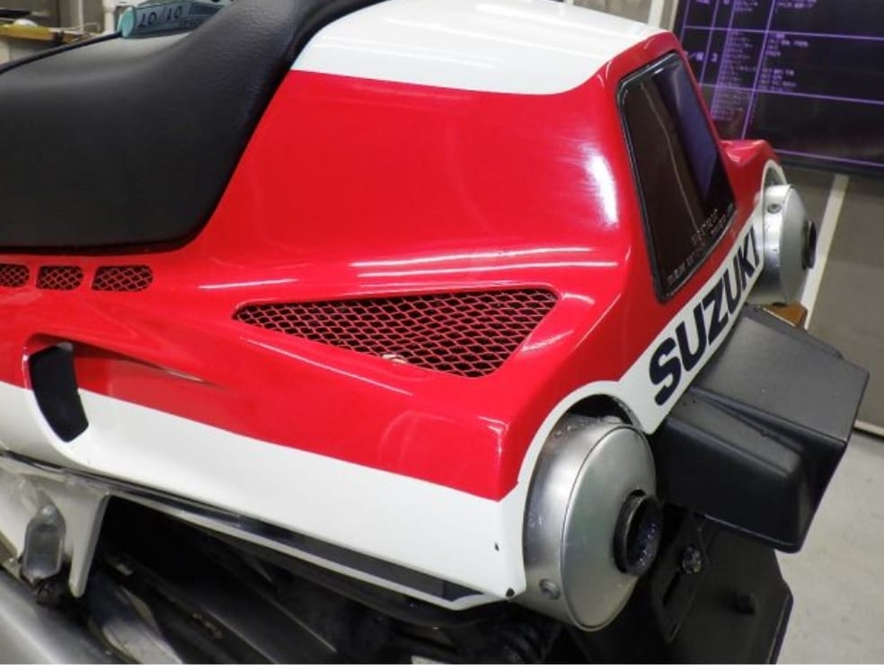 - Colores blanco y rojo clásicos de Suzuki Racing